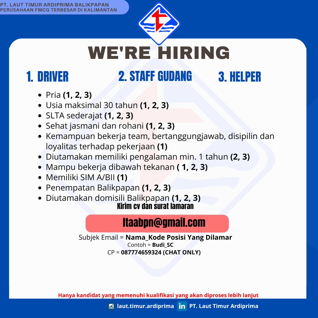 - Diutamakan domisili Balikpapan (1, 2, 3)